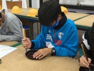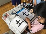 ③開票して、選ばれたデザインを元に手形の色を決め、貼りました。