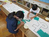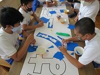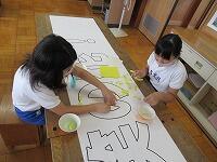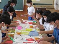 今年は、ちぎった折り紙を台紙に貼って作成しました。運動会の日を楽しみに頑張った5年生です。