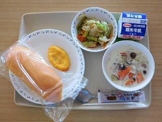 また、さつまいもは栄養分の少ない土地でも育ちやすく、台風にも強いなど長所が13個もあるといわれているそうです。そのため旬である10月の13日に制定されました。今日はさつまいもを使ったシチューが出ています。秋の味覚を味わっていただきましょう。