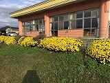 秋晴れの日が続いています。千塚小学校校庭の周りに植えられた菊の花が一斉に咲きそろいました。