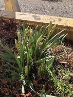 ふと見ると、花壇から、スーッと伸びてきた茎と葉が…この形は、きっとスイセンですねつぼみも、ぷっくりと膨らんできましたよ
