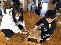 3年生が、2・3校時の図工の時間に、のこぎりを使う活動をしましたアシストネットボランティアのお願いをしたところ、保護者やご家族、地域の方が8名来校してご支援くださいました