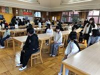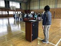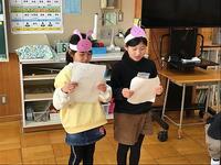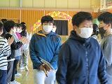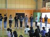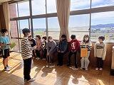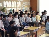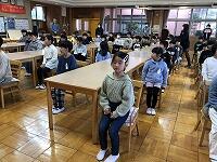 業間の時間に、1・2・3年生がランチルームに集まって、卒業式の前日に行う「お別れの式」の練習をしました
