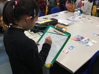 お次は、イラスト・工作クラブ。紙パックで工作をしたり、プラ板にイラストを描いて熱を加え、キーホルダーを作ったりするそうです。