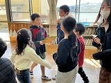 ウオークラリーのスタートです。5年生が工夫して、みんなが楽しめるようなゲームを考えました。4年生がリーダーになり、ワールドグループごとに各教室を周りゲームを楽しみました。ゲームの内容は、「曲当て」「紙飛行機飛ばし」「モルック」「せーので当てよ」「本探し」「宝さがし」「空気いすクイズ」「はいチーズ」「6年生クイズ」「文字探し」です。どのゲームもみんなが盛り上がり、楽しそうな歓声が聞こえてきました。時間いっぱいゲームを楽しみました