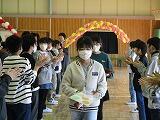 6年生の入場です。4年生が花のアーチを持ち、6年生が入場しました。