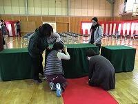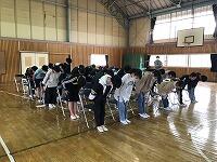 そして、3年担任の先生が中心となって、座り方や立ち方、礼の仕方など姿勢や心構えの確認をしました。