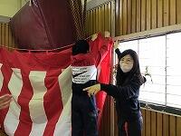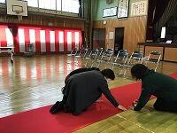 昨日の放課後、子どもたちが下校した後、体育館に紅白幕や赤じゅうたんを設置しました