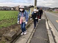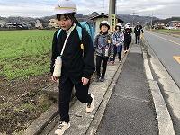5年生・4年生の新しい班長さんを先頭に、登校してきました6年生は、列の最後尾について、見守りながら歩いています。