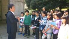 修学旅行の最初の見学場所では、とてもすいていて、ゆっくり見学できました。急遽、茂木衆議院議員さんのお話も聞くことができました。みんな元気です(^o^)