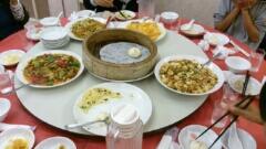 手作り肉まんを体験しました。料理がたくさんすぎて、みんなお腹が限界です。