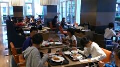 バイキングで朝食をすませ、いざ鎌倉。少し寝不足の子もいます(*_*)