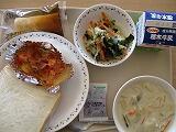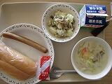 今日の給食のメニューは、「ミニ黒コッペパン ペンネアラビアータ いかナゲット 白菜スープ」でした。