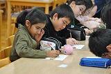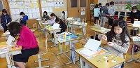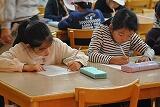 中には、おうちの人といっしょにノートにれん習したり、3年生のよ習を進めていたりしていました。