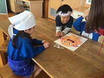 「工夫したところは、同じ色にならないように、色合いを考えた所です!」「給食は栄養や色合いなど、とてもたくさんのことを考えて作っているのだなと思いました。」と感想を書いてくれました。