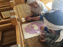 細やかな支援のもと、子どもたちは楽しくエプロン作りに励んでいます。