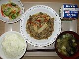 今日の給食のメニューは、【ふるさとメニュー】「ごはん 牛乳 栃木市産豚肉の焼き肉丼の具 キムチあえ とうもろこしのスープ」でした。