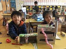 2年生は、生活科の「うごくうごくわたしのおもちゃ」で、身近にある材料から動くおもちゃ作りを行いました。どの班も楽しく活動することができました。2月には、自分たちで作ったおもちゃを使って、1年生と一緒に遊ぶ予定です。さらにおもちゃを工夫していきたいと思います。