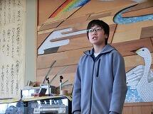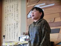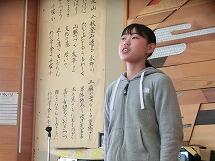 好きな詩を一編選び、全校生の前で『語り』を行っています。