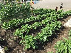 5月の初めに種まきをしたポップコーンが大きくなり、プール横の畑に植え替えをしました。昨年度栽培したポップコーンはえのき祭でたくさん販売することができました。今年もたくさん収穫し、えのき祭で販売できたらと考えています。学校が再開したら、またみんなで大切に育てましょう。