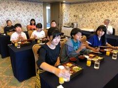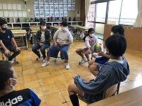 放課後、ランチルームで「授業研究会」を行い、振り返り話し合いました。
