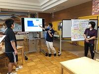 ↓↓ 大型テレビを前に、自分の考えをプレゼンテーション。図や式、言葉で表現してあるので、わかりやすく説明することができました