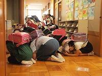 前回の訓練を生かして、素早く身を守ることができました学校の中のどこにいても、また登下校の途中でも、家で過ごしているときも、自分の命は自分で守れるよう、真剣に避難訓練をしておくことが大切ですね