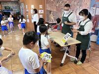 生の小麦や大豆を触ってみたり、もろみを少し舐めてみたりと発見がたくさんあった授業になりました。子どもたちも、博士と一緒に楽しんでいました