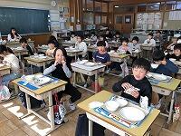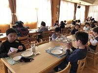 給食の時間には、6年生の代表児童が今日のデザートが6年生の投票によって選ばれたものであることを放送しました。