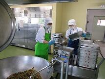 2学期最初の給食です。久しぶりの給食を楽しみにしている子供達のために、給食室では7名の調理員さんが腕をふるってくれています。