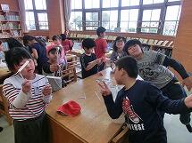 昼休みには図書委員が中心になって【工作教室】を行いました。紙コプター・切り絵・しおりの3種類の中から本を参考にしながら好きなものを思いのままに作りました。
