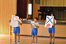 業間の時間には図書委員会による図書集会が行われ、【人気の本についての○×クイズ】を行いました。気になった本はぜひ借りて読んでみてくださいね。