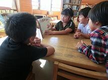 ワールドグループの高学年が低学年の子たちに読み聞かせを行うというもので、上手にやさしく読めていました。