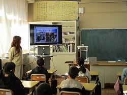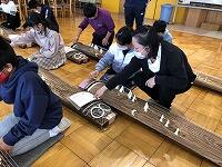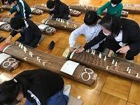 日本の伝統楽器「琴」について学びましたこれは、文化庁の芸術家派遣事業の希望がとおり実現できました。12月15日(金) 音楽の時間に、琴奏者の2名の先生が来校し、5・6年生を対象にご指導いただきました