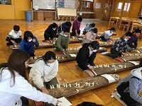 【2年生】一人一人、「学びの姿」を渡している間…グループごとに折り紙で飾りを作っています