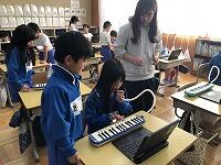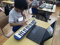 2年生が、音楽の時間に、「こぎつね」を鍵盤ハーモニカで演奏していました