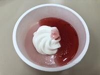 デザートのパッケージにも、クリスマスのイラストがかいてあって、ふたを開けると・・・いちごのプリンに、豆乳ホイップクリームといちごソースがかかっていて、とってもおいしかったですね