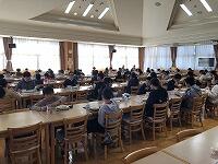 【1年生】冬休みについて、「学びの姿」について、担任の先生の話を聞いています