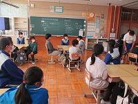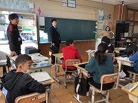 11月24日(金)の5・6校時に、吹上中の1年生(千塚小学校卒業生27名と他小学校卒業生数名)が自転車で来校し、交流活動を行いました