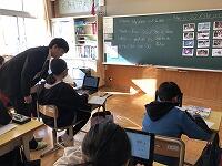 11/22(水)、5年生の算数で研究授業を行いました。今回は、市教委の先生からご指導いただく要請訪問でした。「四角形や三角形の面積」という単元で、タブレットPCのよさを十分に活用しながら、三角形の面積をどのようにしたら求められるかについて学び合いました。