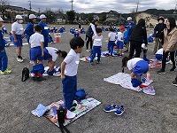 少人数で組んで、たすきを渡す練習を行いました。何度も繰り返すことで、徐々に慣れていきました。