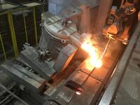 工場で、まず目に飛び込んできたのは、1500度を超える高温で溶かした鉄です