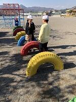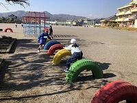 タイヤでは、へびおにの要領で…2チームに分かれて楽しそう