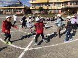 運営委員会を中心に、みんなが楽しめるものを考え、今回は「くものすおにごっこ」を実施しました。鬼は校庭に描かれたくものす状の線の上しか通れません。鬼につかまってしまった人数が少ないグループが勝ちになります。