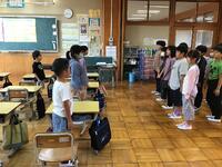 代表委員会で「学校のごみを、何とかしよう」と話し合って、「みんなで進んで拾ったり、掃き掃除をしたりしよう」となりましたね千塚小では、これまでも毎朝5・6年生と委員会の人たちが、当番として交代で掃き掃除をしてくれています