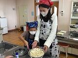 先日、収穫したポップコーンの実を調理しました。児童はこの日をずっと楽しみに待っていました!