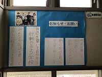 【階段の踊り場に】委員会ごとのコーナーがあります。委員会の4・5・6年生が全員そろった日に写真を撮って、「今年度のめあて」や「お知らせ」も合わせて書いてありますよ。よく読んでくださいね