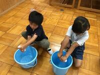 職員室前には、アサガオが咲いていました。アサガオの色が紫のマーブル状で「とってもきれいだね!!」と指を指しながら、集まって話をしている姿が見られました。また、ねこじゃらしを触ると、「気持ちがいいね。」と言いながら、楽しそうに遊んでいました。