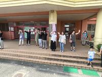 いつも、6年生と5年生が2名ずつ当番で朝の掃き掃除をしてくれていましたが、今日は5年生が4名で掃いてくれていました。(もう一人は撮影できませんでした。ごめんなさい)