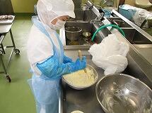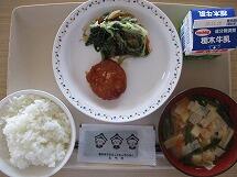 今日の「鮭のマヨネーズ焼き」は、みじん切りにした玉ねぎとマヨネーズ、粉チーズを混ぜて作った特製ソースを鮭の上にかけ、オーブンで焼きました。とても時間がかかる料理ですが、苦労をおしまず、手間ひまかけて一つ一つ手作りしています。とてもおいしく、みんな完食でした。食べ終わったアルミカップを、たたんでキレイに片付けると、調理員さんに作ってくれた感謝の気持ちが伝えられますね。